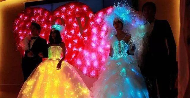 干冰机是用来制造烟雾效果的,会让从烟雾中走出来的新娘子仿佛仙女一般。但是干冰的温度会比较低,要注意安全。